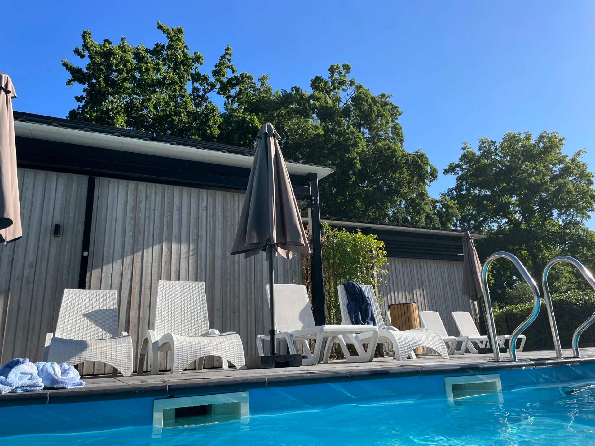Het zwembad ligt 50 meter van het huis. Een 20-meter bad. Aan het zwembad grenst ook een spa, met sauna en jacuzzi - te huren voor privé-gebruik.